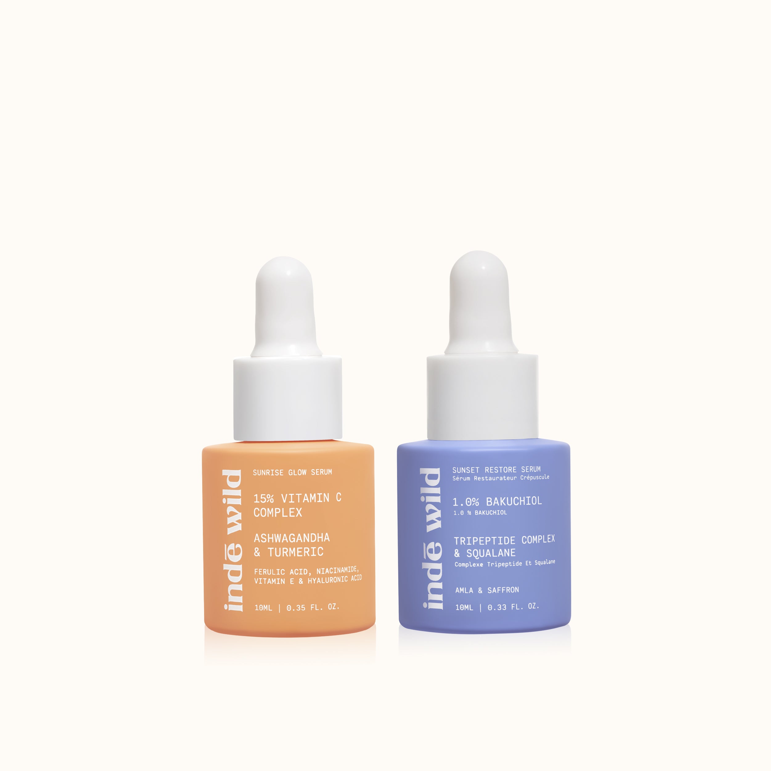 USAGE: Apply both serums to cleansed, dry skin and before moving on to moisturizer (and SPF in the case of our Sunrise Glow 15% Vitamin C Complex Serum). We suggest giving them some time to fully absorb into the skin before exposure to the sun.