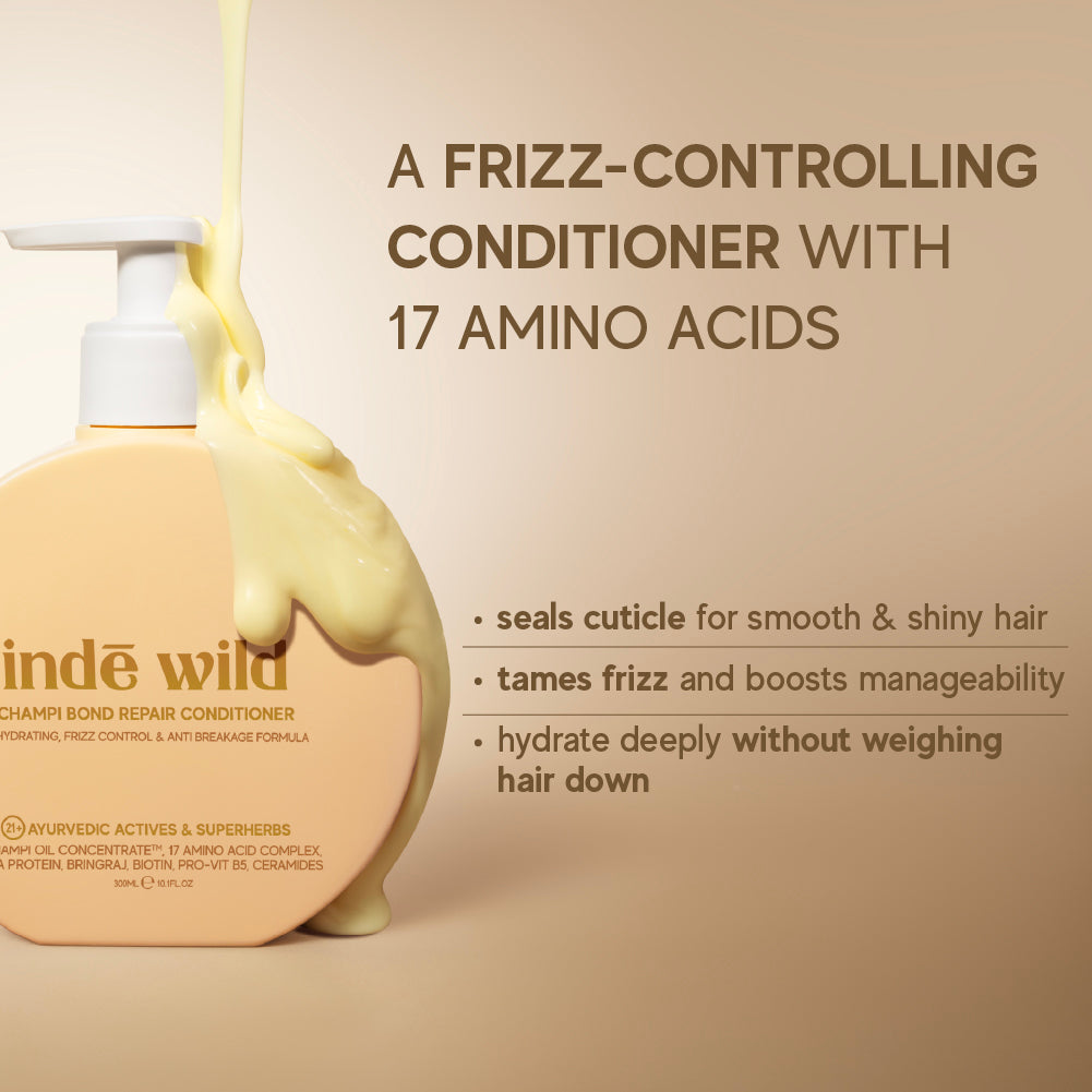 Meet The Big Champi Bundle, your hair’s new power trio. This 3-step routine brings hair back to life from root to tip by pairing Champi Hair Oil + Bond Repair Shampoo + Conditioner. Ayurveda meets biotech for strands that look stronger, shinier, smoother and seriously healthier.