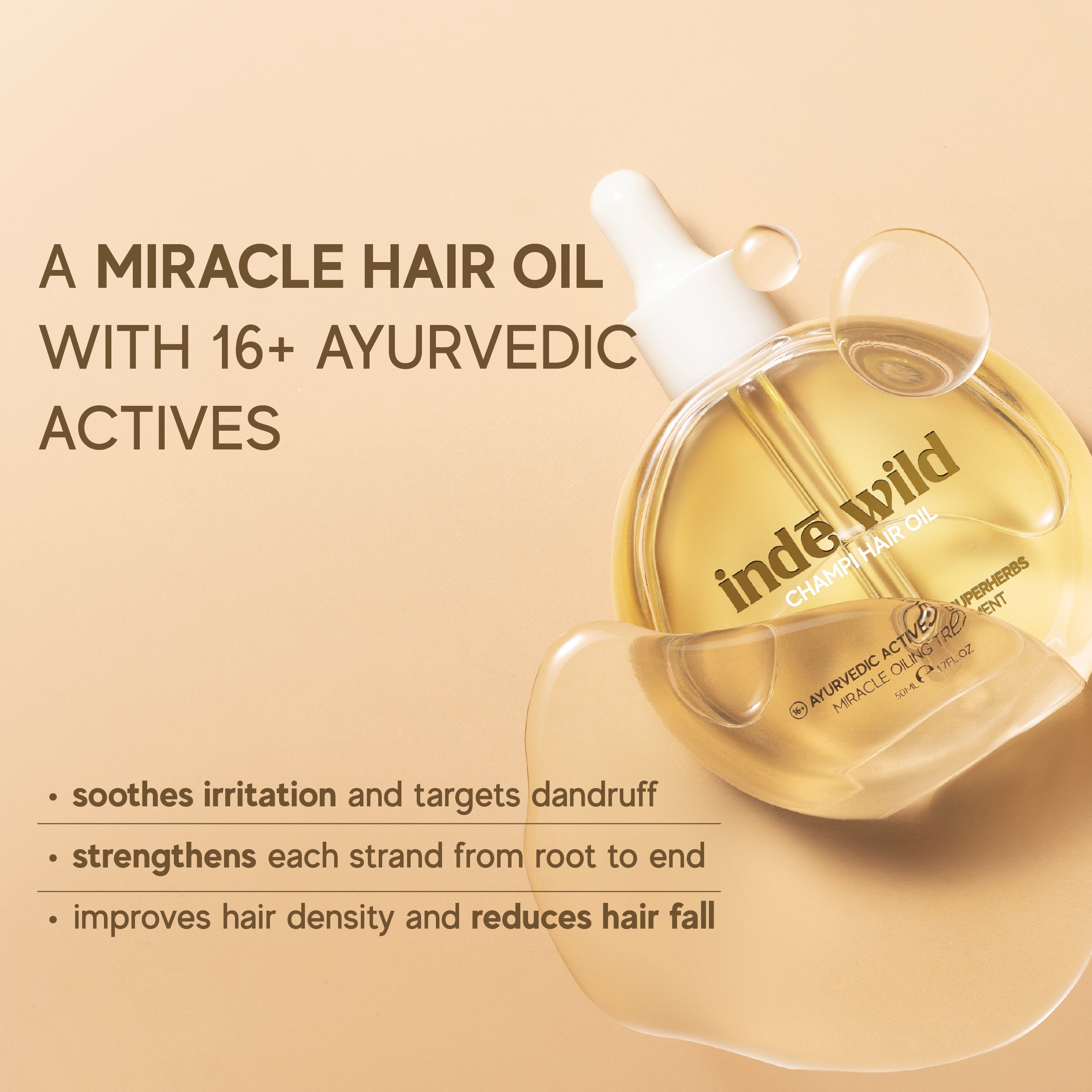 The Champi Hair Oil is loaded with 16 Ayurvedic superherbs and botanicals that feeds your scalp and hair, repairs bonds, calms dryness and restores balance before you even step into the shower.